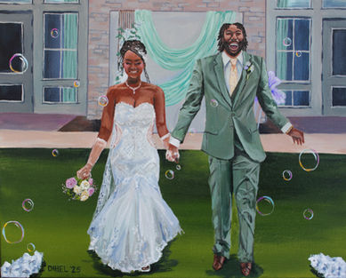 "My new husband and I are so thankful for Dihel Art! Jennifer is so good at recognizing that "special moment" and then capturing it forever! We loved especially how she was interactive with our guests. It is so meaningful to have a painting that our loved ones helped to make!"