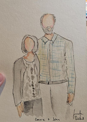 My illustrations are created in a playful, faceless style that capture the essence of your guests. With a mix of watercolors, markers, pens, and pencil, I bring your loved ones to life in a way that’s both stylish and unforgettable. It’s more than just a keepsake—it’s an experience, a living memory, and a little bit of magic on paper - and your guests get to watch it all come to life!